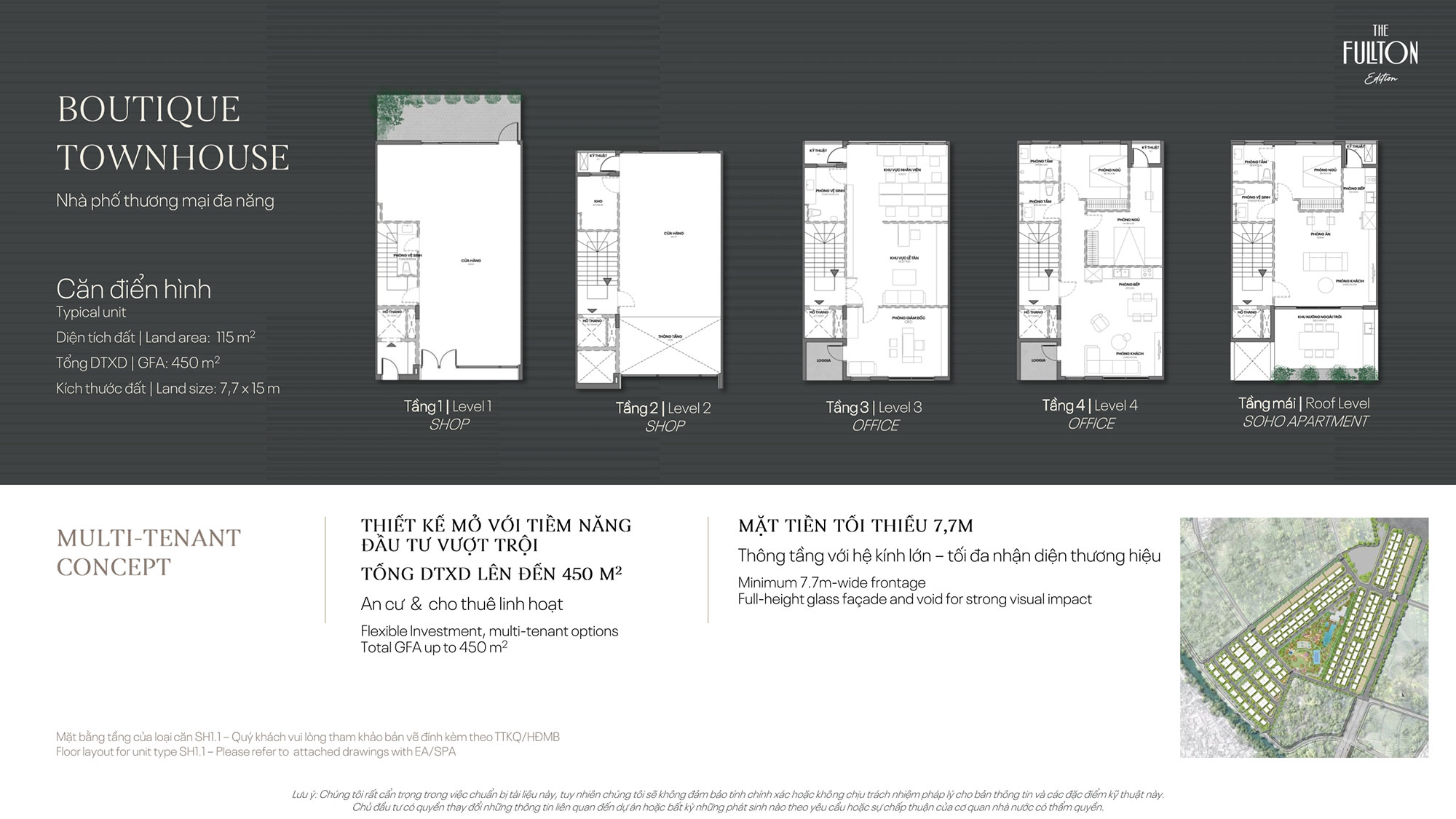 Boutique Townhouse (Nhà phố liền kề) The Fullton Ocean Park 3 có tất cả 78 căn, diện tích đất từ 115 – 168 m2, diện tích xây dựng từ 420 – 547 m2, chiều cao 5 tầng, giá bán đang cập nhật. Đặc trưng của dòng sản phẩm nằm ở chức năng linh hoạt: vừa kinh doanh, vừa để ở. Trong đó, những căn nhà phố nằm trên đại lộ Hừng Đông 25 m, khả năng khai thác kinh doanh được đánh giá rất cao, tương tự shophouse Phố Biển & Vịnh Thiên Đường. Phần còn lại hướng ra đường nội bộ, chủ yếu phục vụ nhu cầu để ở của chủ sở hữu. Đây là dòng sản phẩm có giá bán tốt nhất tại The Fullton, là cơ hội đầu tư/kinh doanh và tận hưởng cuộc sống thượng lưu chất lượng không thể bỏ lỡ dành cho những khách hàng cao cấp quan tâm Vinhomes Ocean Park 2 – 3.