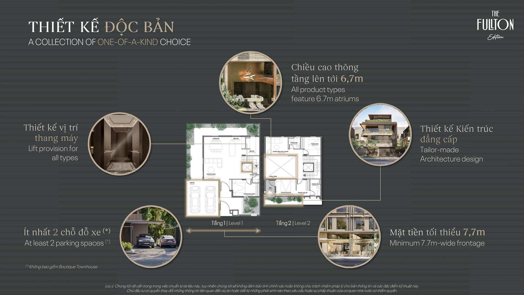 Enclave Villa (Biệt thự tứ lập) The Fullton có tất cả 72 căn, diện tích đất từ 151 – 179 m2, diện tích xây dựng từ 286 – 289 m2, chiều cao 4 tầng, giá bán đang cập nhật. Điểm nhấn của biệt thự tứ lập Enclave Villa đến từ diện tích và giá thành thấp hơn so với biệt thự đơn lập & song lập, song vẫn đáp ứng những tiêu chuẩn của một căn biệt thự như có 2 mặt thoáng với nhiều cửa sổ và sân vườn đủ rộng để gia chủ thỏa sức trồng cây xanh hoặc thiết kế một không gian thật “chill” cho riêng bản thân mình. Đây là một dòng sản phẩm khá độc đáo của The Fullton nói riêng và Vinhomes Ocean Park 2 – 3 nói chung – Dòng sản phẩm mà bạn sẽ ít khi gặp trong những dự án bất động sản thấp tầng của Vinhomes hoặc CapitaLand.